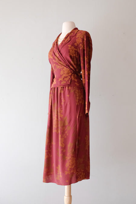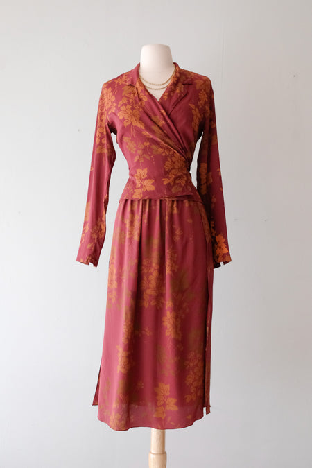 Fabulous 1970's Calvin Klein Autumn Floral Silk Two Piece Set / Sz M