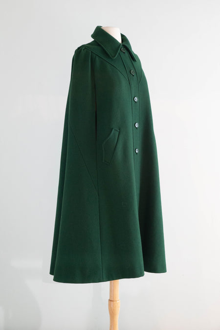 Fabulous 1970's Wool Cape In Evergreen Wool By Peabody House For Joseph Magnin / M