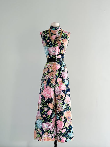Fabulous 1970's Tropical Floral Print Jumpsuit / Sz M/L