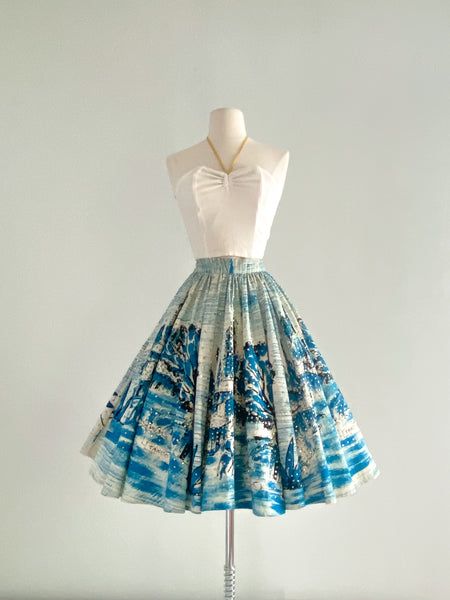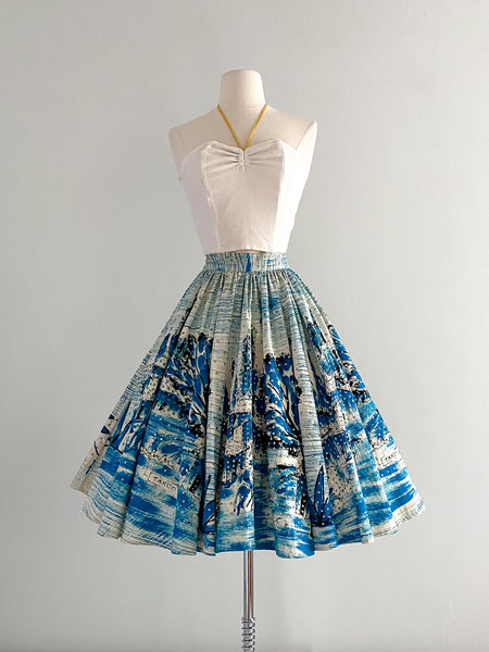 Glamorous 1950's Taxco Mexican Novelty Print Circle Skirt / W 26