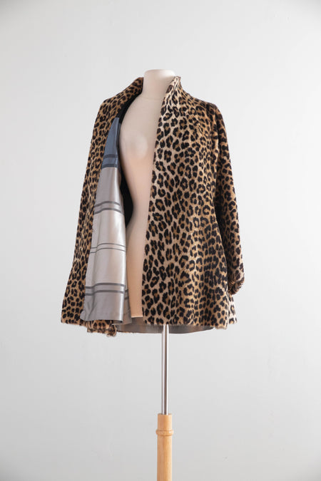 Glamorous 1950’s Leopard 🐆 Print Swing Coat With Dramatic Lining / SM