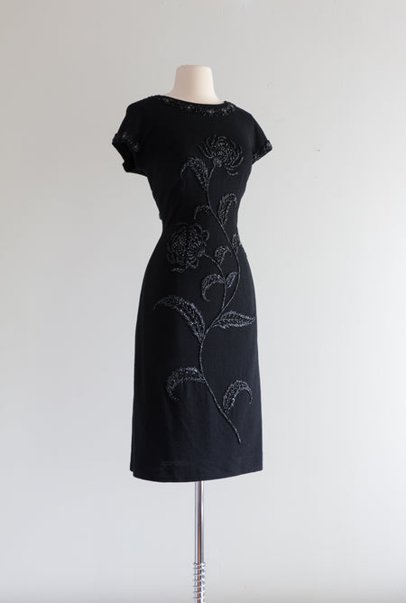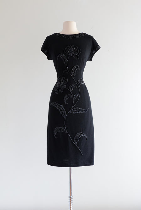 Glamorous 1960's Beaded Cocktail Dress In Bold Black & White / Small