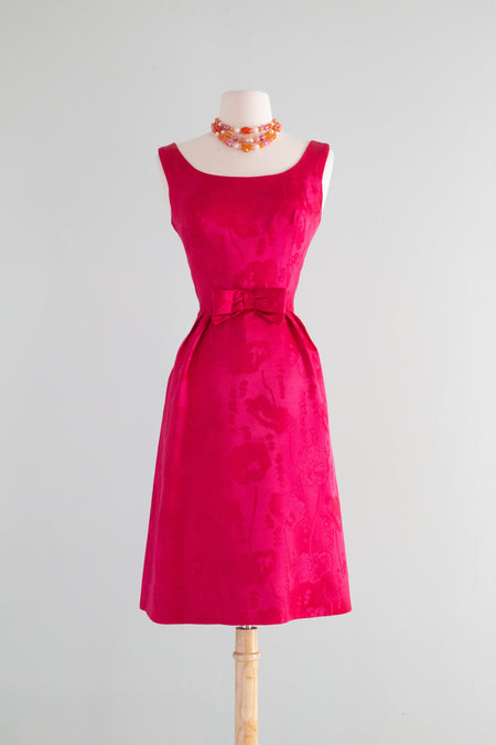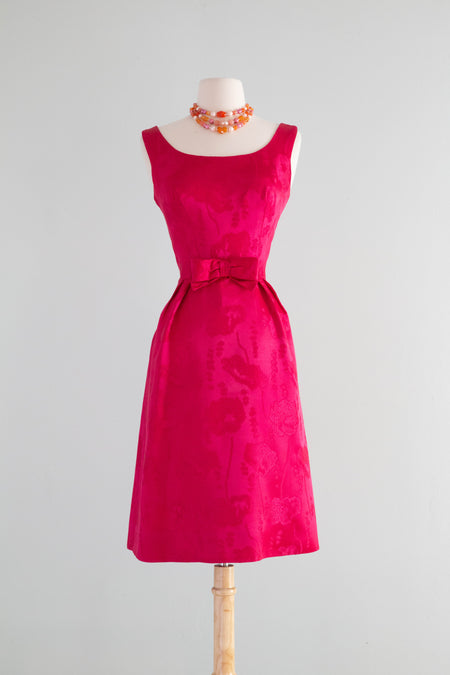 Glamorous Early 1960's Cerise Pink Brocade Party Dress By Mardi Gras / SM