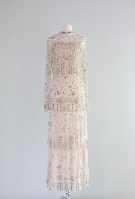 Sold Out Gorgeous 1920's Bittersweet Cocoa Silk Afternoon Dress With Embroidered Antique Lace / Small $448.00