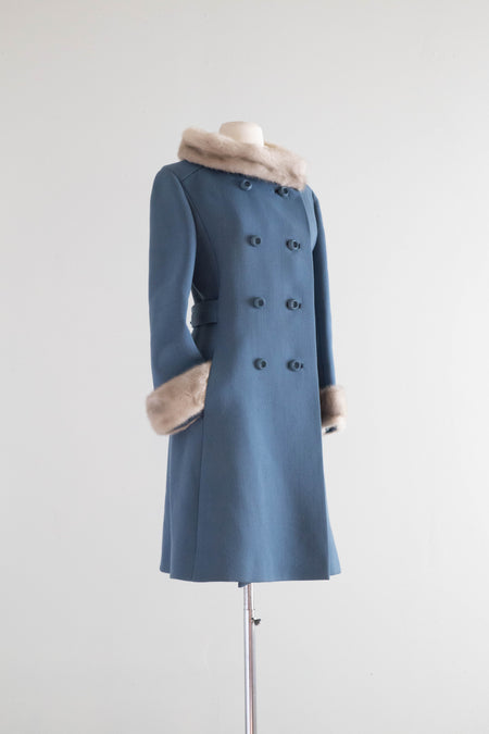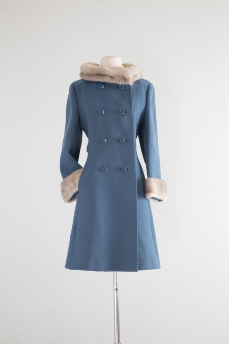 Gorgeous 1960's Wedgewood Blue Wool Coat With Mink Trim / Medium