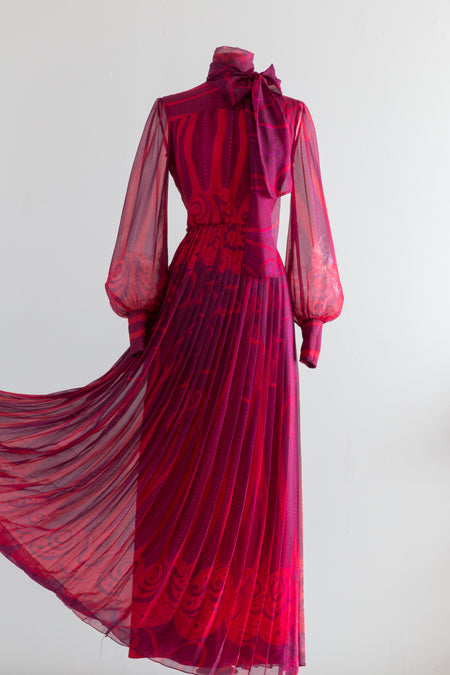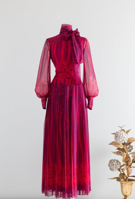 Gorgeous 1970's Art Nouveau Inspired Silk Chiffon Gown By Joan Leslie / Waist 26