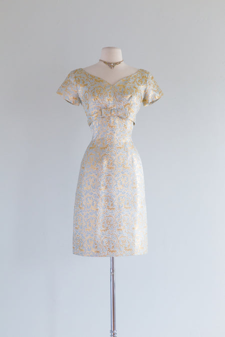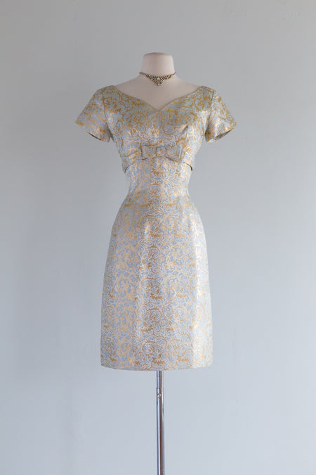 Gorgeous 1960's Robins Egg Blue & Metallic Gold Cocktail Dress / Medium