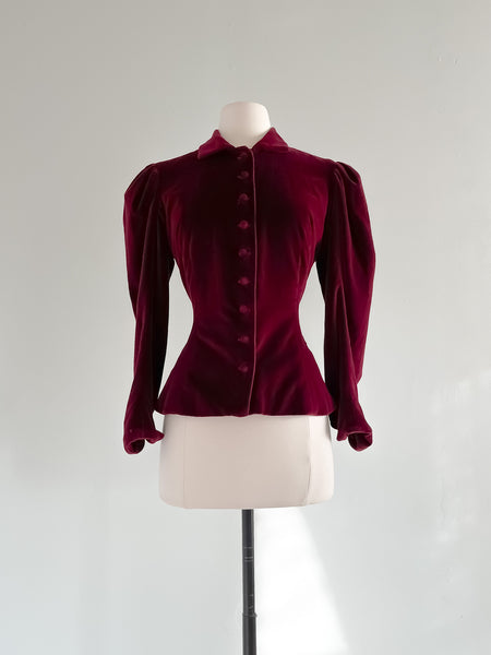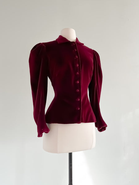 Gorgeous 1970's Maroon Velvet Victorian Style Jacket / Sz S