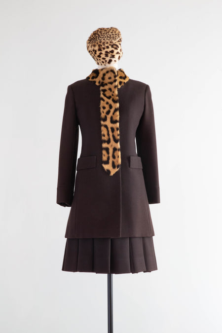 Sold Out Iconic 1960's Chocolate Wool Dress & Matching Coat With Leopard Print Trim / Small now $398.00 $448.00