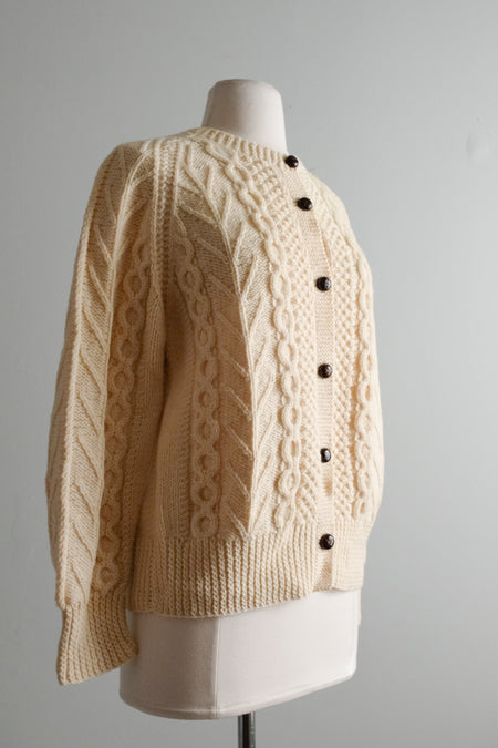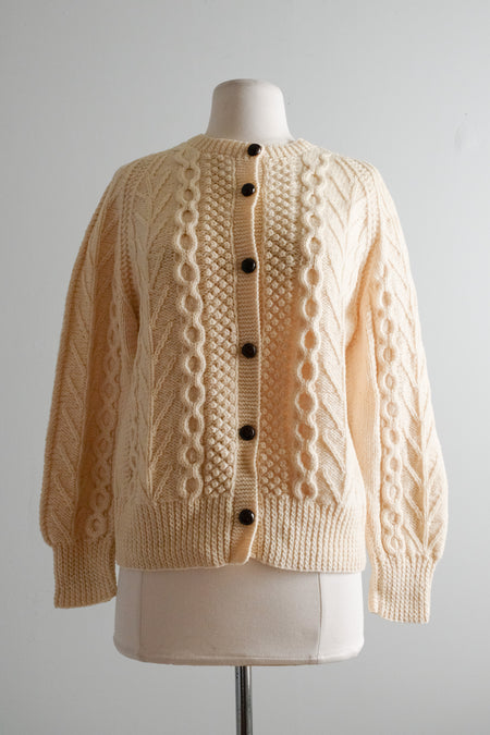 Lovely 1970's Cable Knit Aran Wool Cardigan Sweater/ Sz M