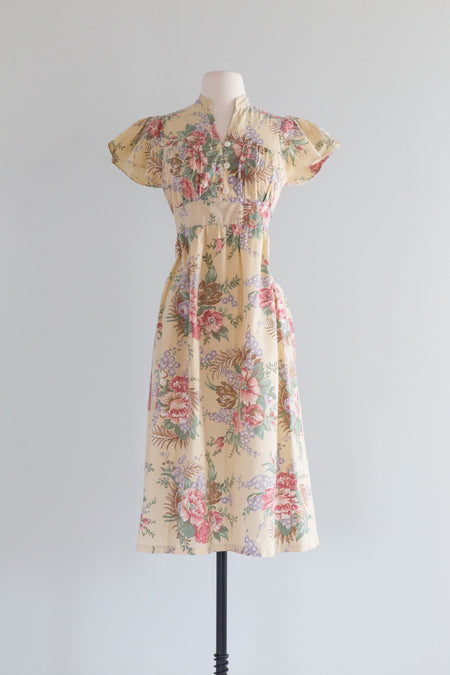 Lovely 1970's Cotton Floral Day Dress / SM