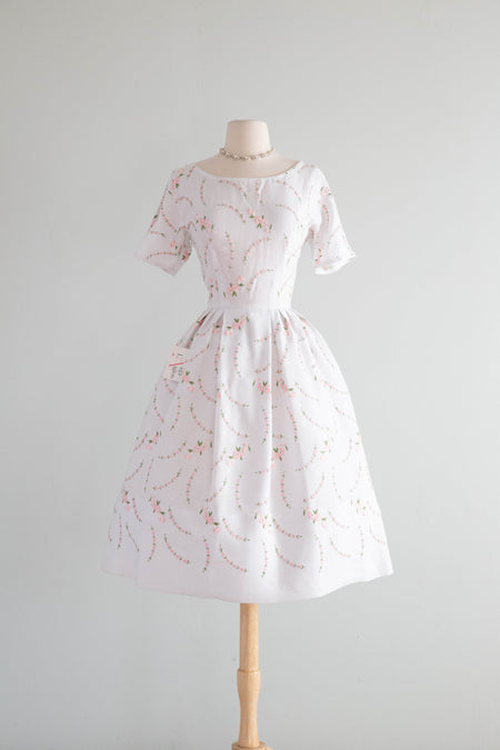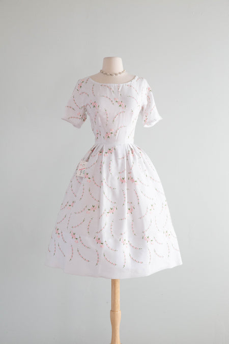 Picture Perfect 1950's Cherry Blossom Embroidered Party Dress By L'Aignon NOS / SM