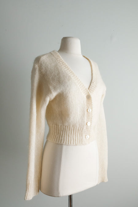 Perfect 1990's Ivory Mohair Knit Cardigan Sweater/ Sz M
