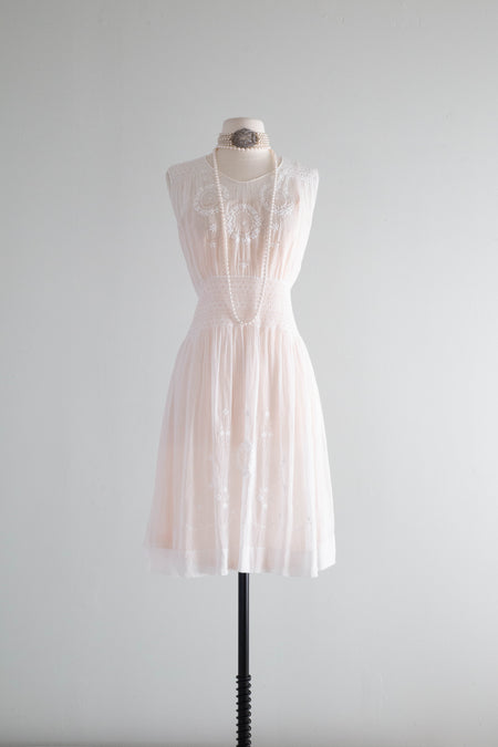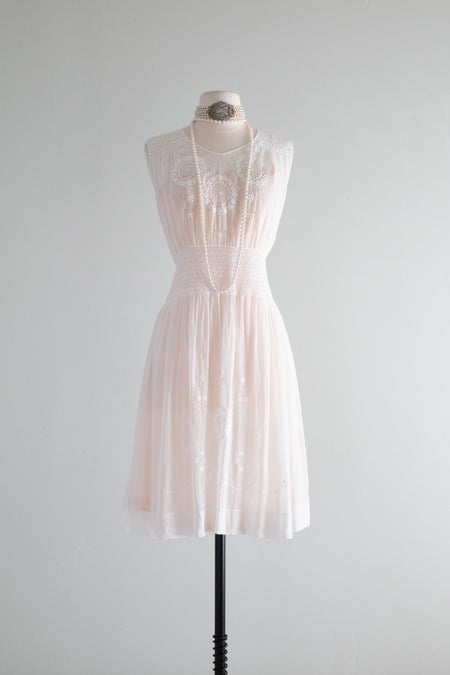Pristine 1920's White Cotton Voile Embroidered Hungarian Peasant Dress / small