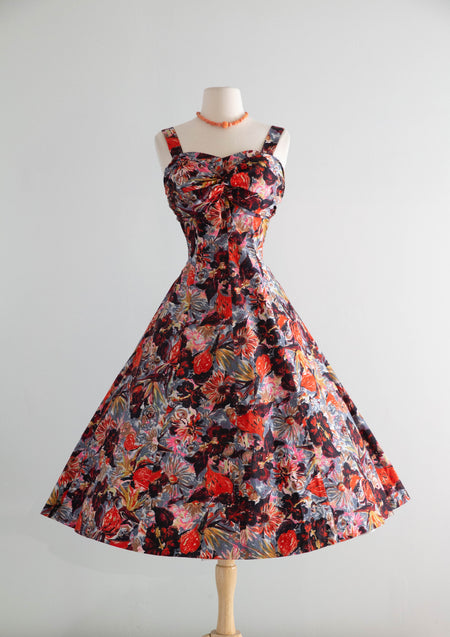 Sold Out Rare 1950's Designer Cocktail Dress By Gigliola Curiel For Bergdorf Goodman With Maple Leaves / SM $648.00
