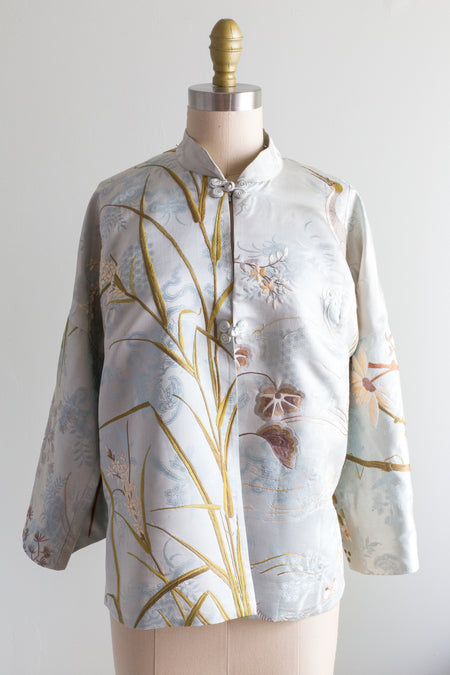 Sold Out Rare Antique 1920s Japanese Silk Kimono In Goldenrod Embroidered in Pink Flowers & Butterflies / OS $298.00