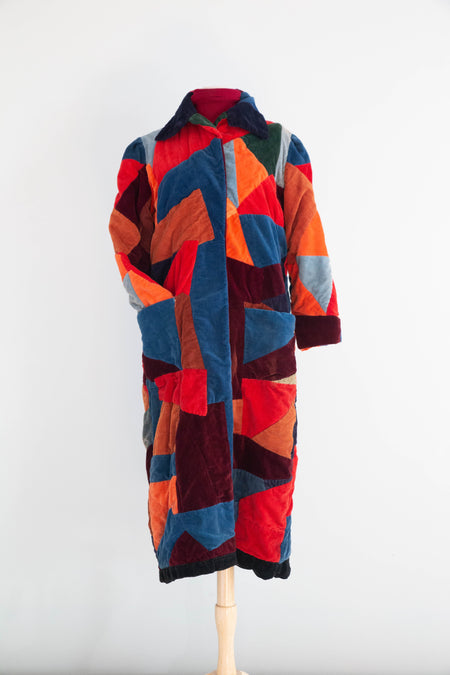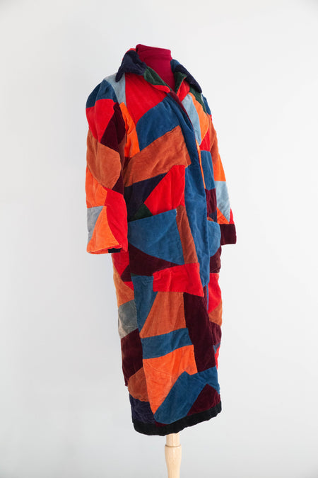 Rare Handmade Midcentury Crazy Quilt Corduroy Patchwork Coat / ML