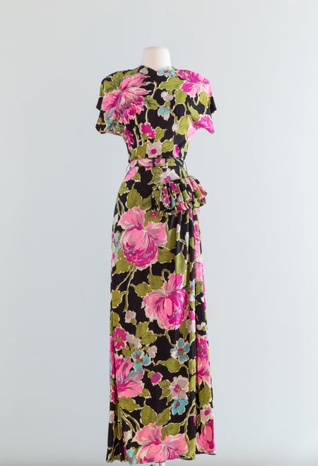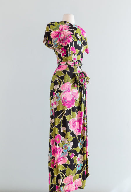 Sold Out Romantic 1930's Bucolic Floral Print Cotton Maxi Dress By Dansant Originals / Waist 26 $448.00
