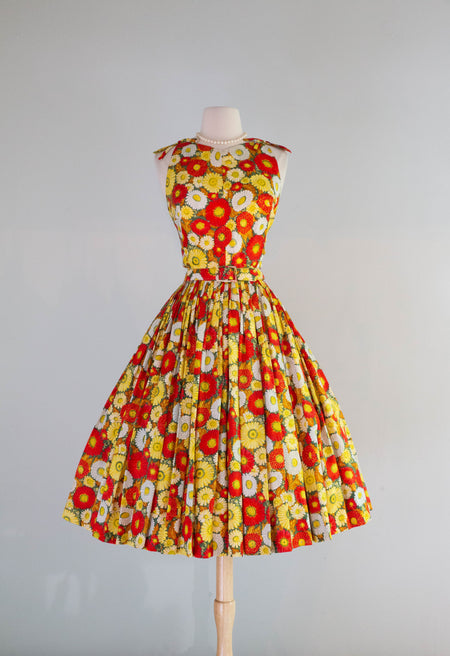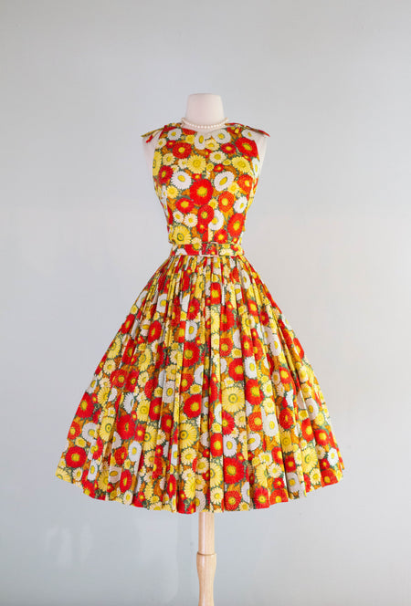 Romantic 1980's Bucolic Rose Print Cotton Dress With Full Circle Skirt & Jacket /