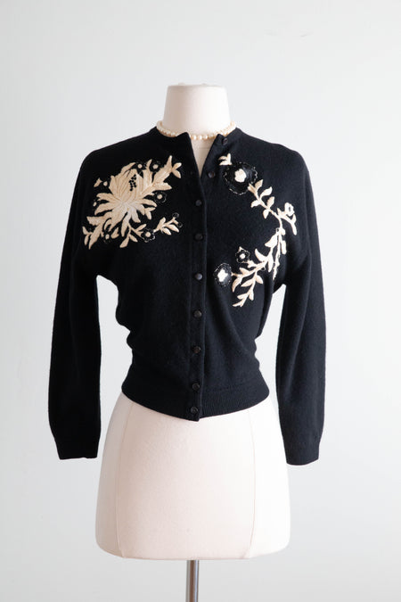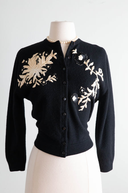 Sold Out SALE Stunning 1950's Crimson Silk Couture Ball Gown With Black Lace Trim / Waist 25" now $398.00 $498.00