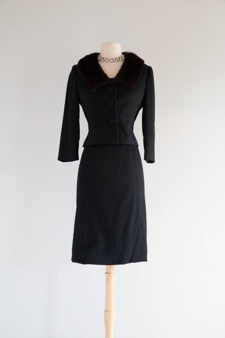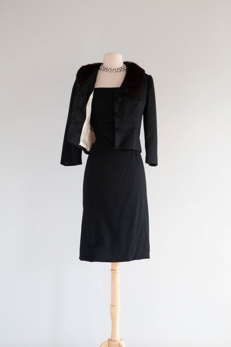 Sophisticated 1950's Black Wool Cocktail Dress With Matching Jacket / SM