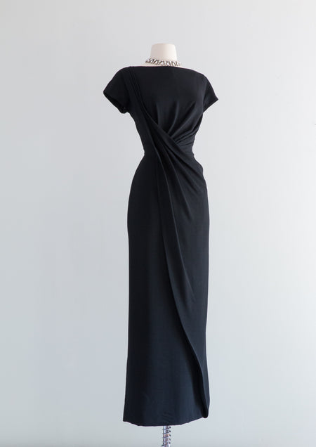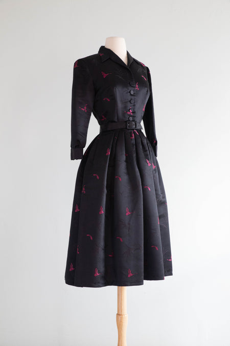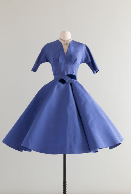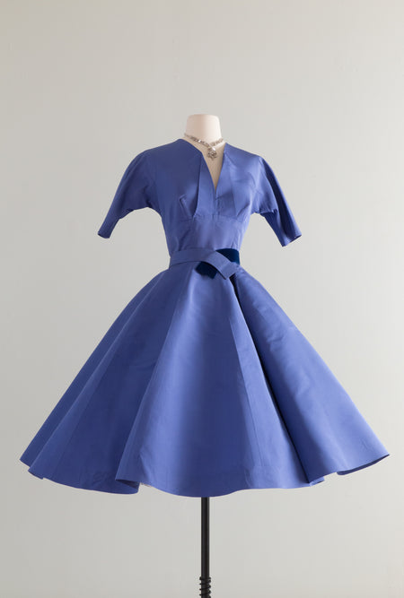 Sold Out Spectacular 1950's French Blue Silk Faille Cocktail Dress By Sophie Gimbel / Waist 28" $448.00
