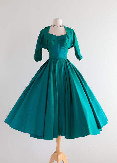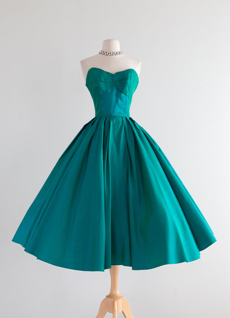 Sold Out Spectacular 1950's Peacock Green Iridescent Strapless Party Dress With Jacket / Waist 27 $298.00