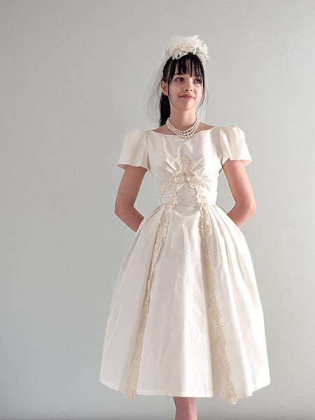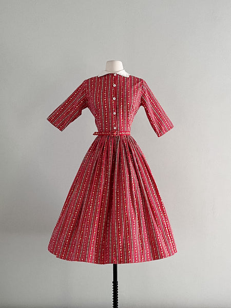 Splendid 1950's Cotton Striped Party Dress With Bow / SM