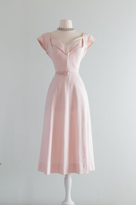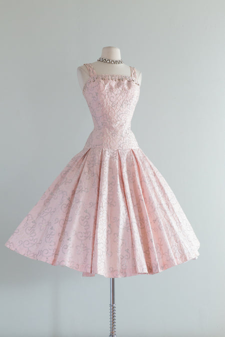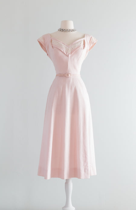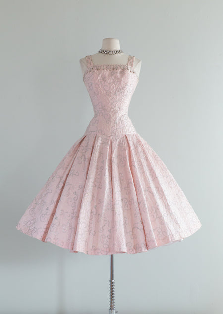 Stunning 1950's Pale Pink Party Dress By Perullo / Waist 26