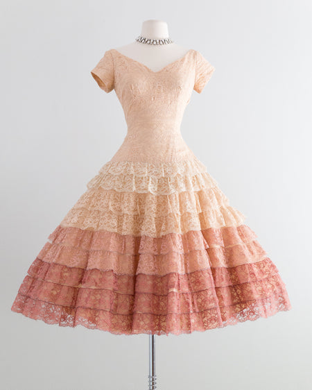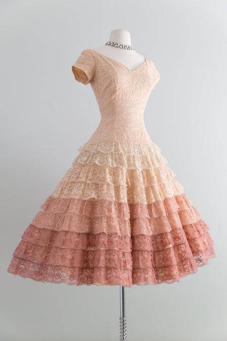 Stunning 1950's Ombre Lace Party Dress / Waist 26