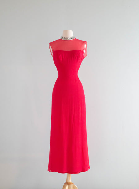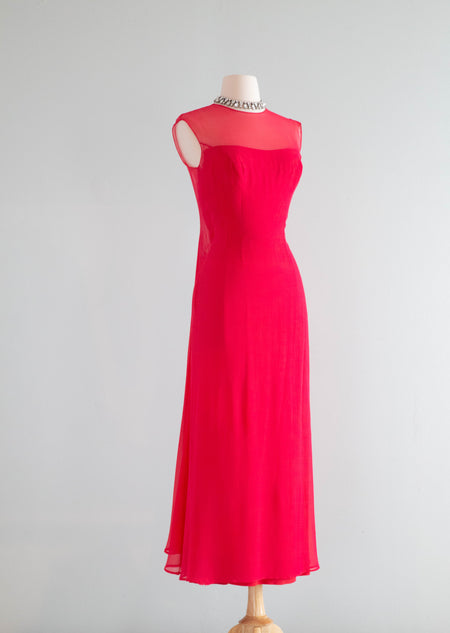 Stunning 1960's Cerise Silk Chiffon Evening Gown By Mignon / SM
