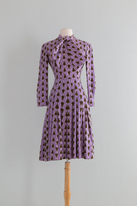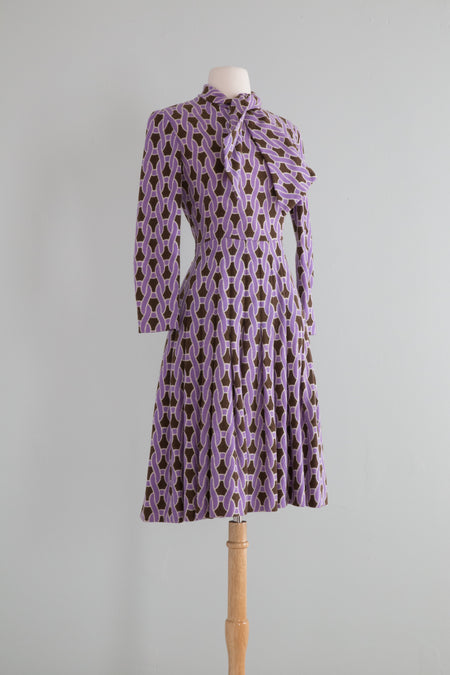 Stunning 1960's Crimson Goddess Printed Maxi Dress / Sz SM