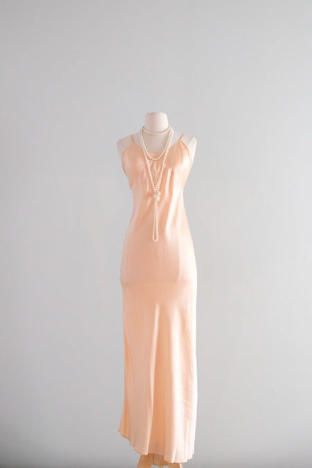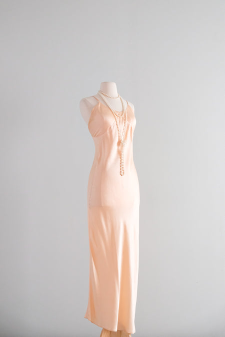 Vintage 1930's Peach Silk Bias Cut Slip Dress By Barbizon / S