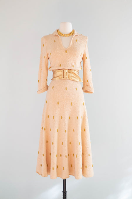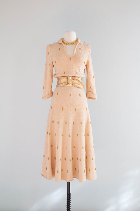 Vintage 1940's Hand Knit Golden Raindrop Dress by Diane of Beverly Hills / Medium