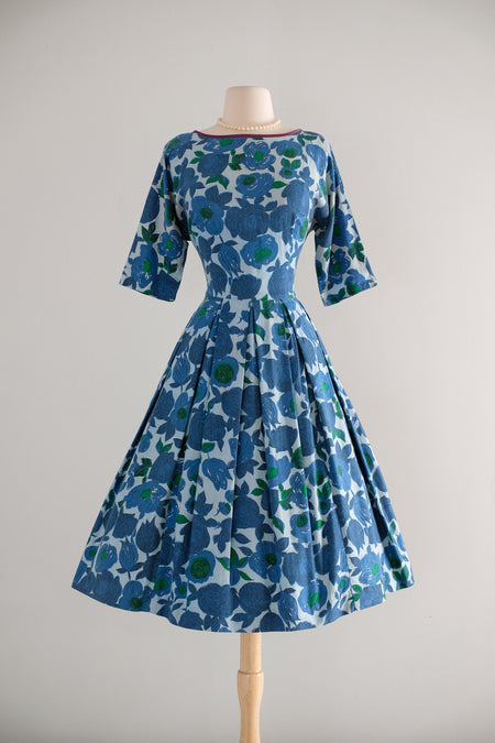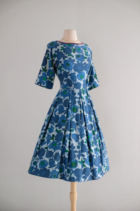 Vintage 1950's Azure Rose Floral Party Dress / M