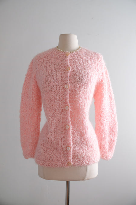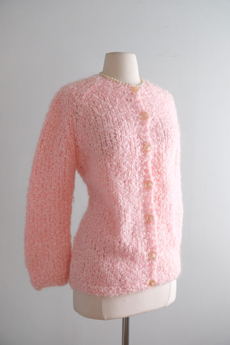 Vintage 1950's Baby Pink Mohair Knit Cardigan by Blairmoor / ML