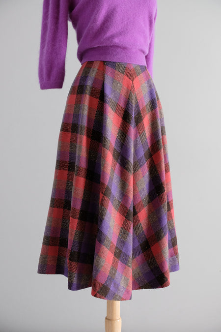 Vintage 1950's Chevron Checkered Wool Autumn Skirt by Jo Collins / M