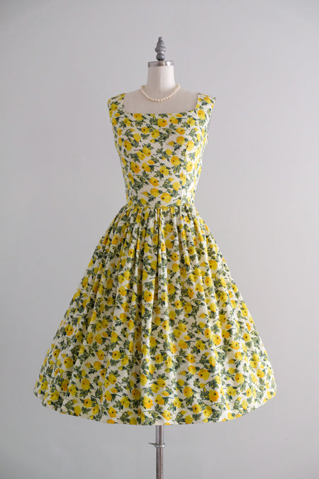 Vintage 1950's Sunny Days Yellow Rose Cotton Sundress / S