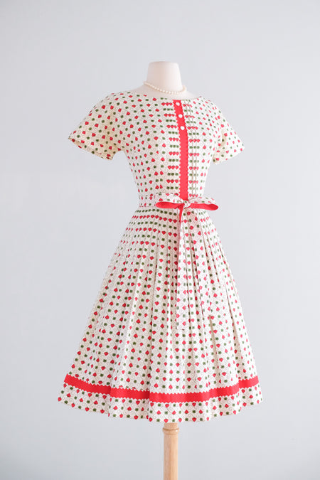 Vintage 1950's Strawberry Patch Cotton Sundress / Small