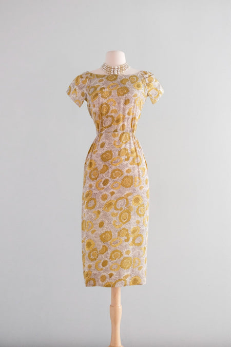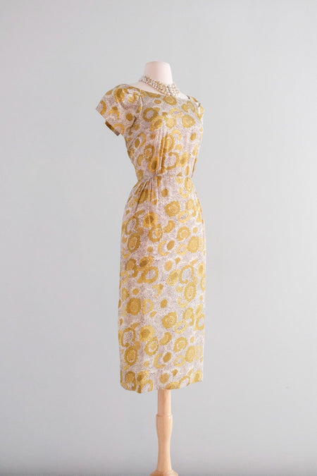 Vintage 1950's Sunflowers Wiggle Dress / Medium