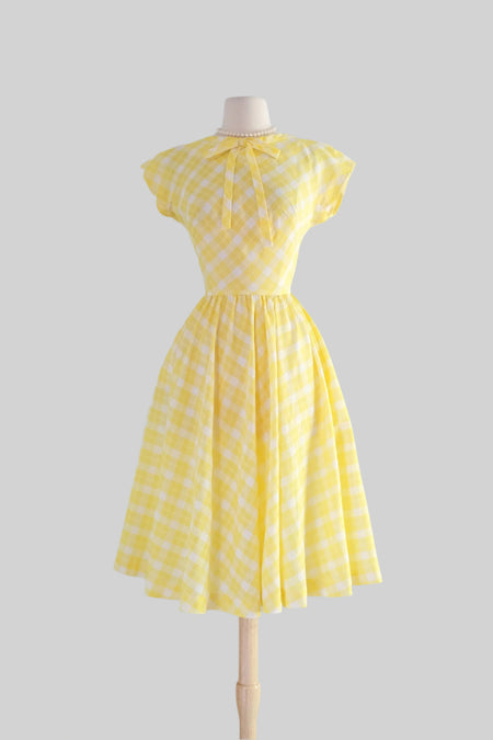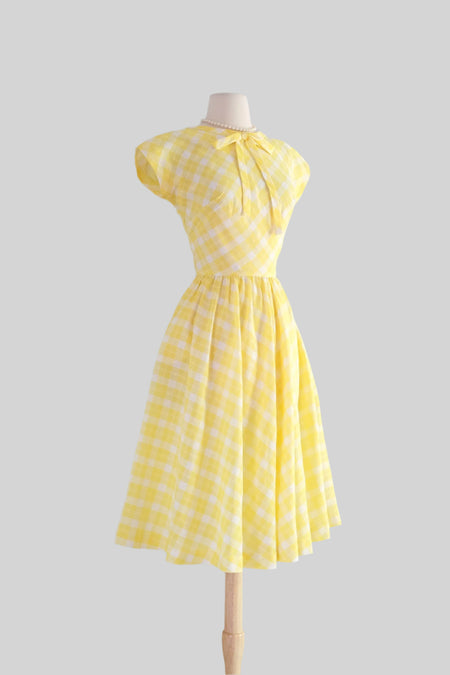 Vintage 1950's Yellow & Ivory Plaid Cotton Dress / XS