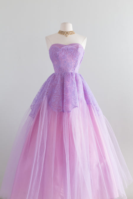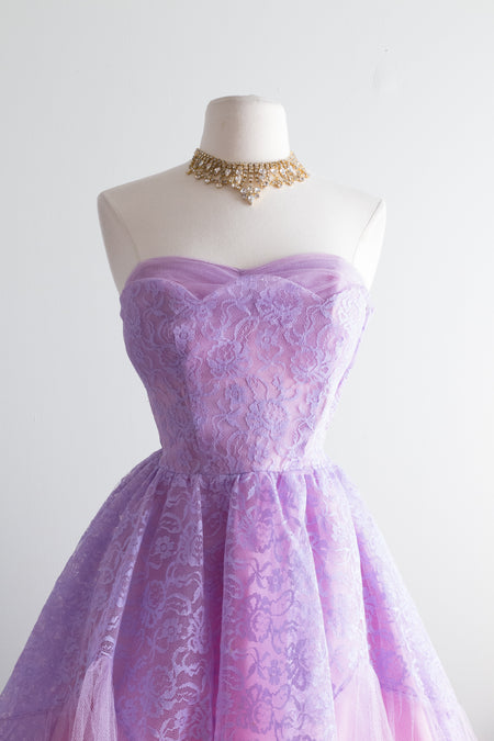 Vintage 1950's Violet Dream Strapless Tulle Prom Dress / Waist 25