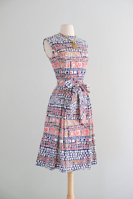 Vintage 1960's Mod Batik Style Shift Dress by McMullen / M