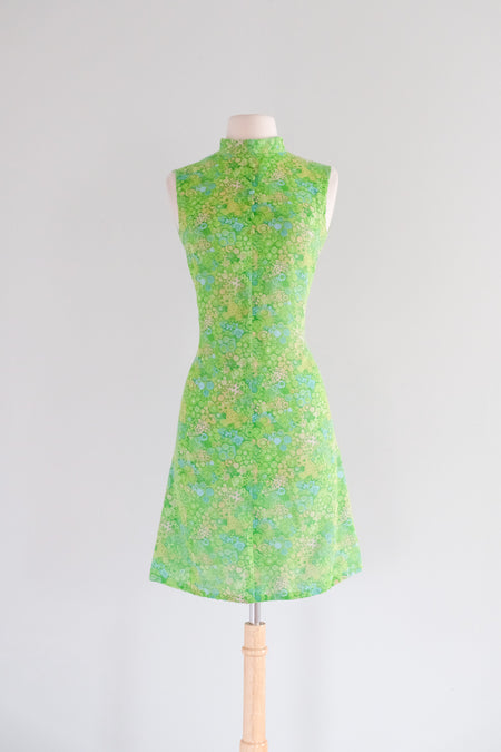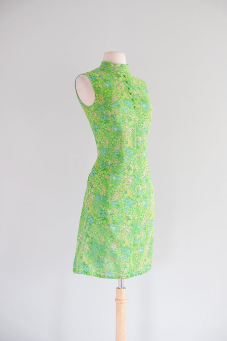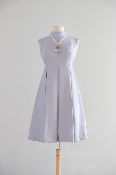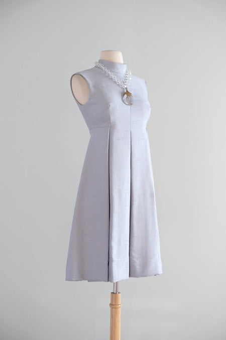 Vintage 1960's Mirror Blue Shantung Silk Mod Cocktail Dress / S