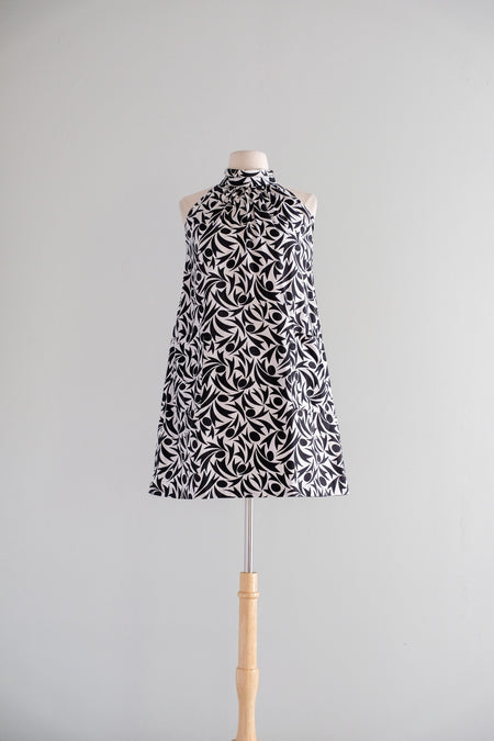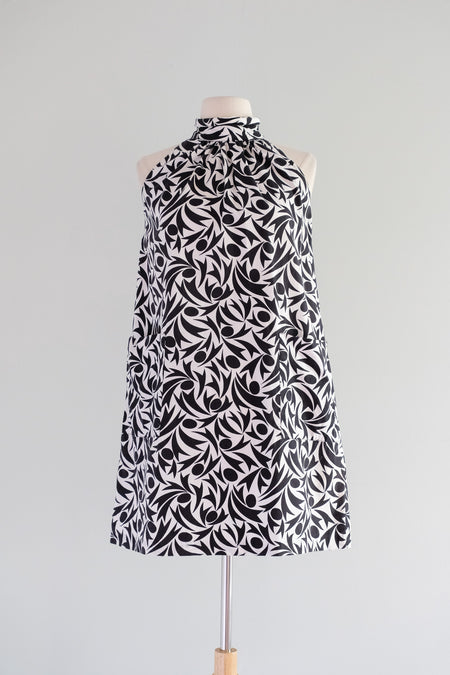 Vintage 1960's Mod Graphic Black & White Cotton Mini by Raymodes / Small