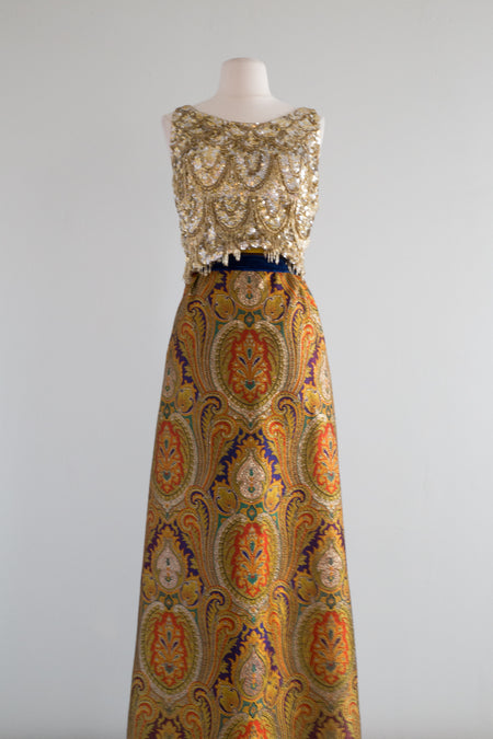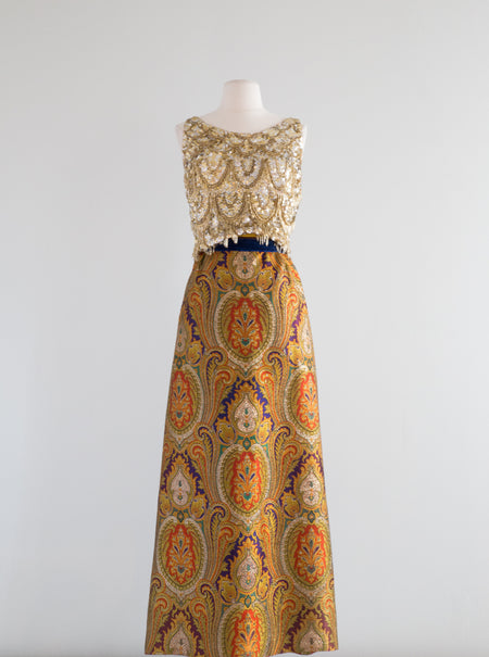 Vintage 1960's Metallic Paisley Maxi Skirt / Waist 28