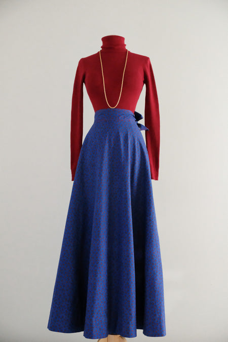 Vintage 1970's Blue & Red Contrast Paisley Print Skirt by Anne Klein / S