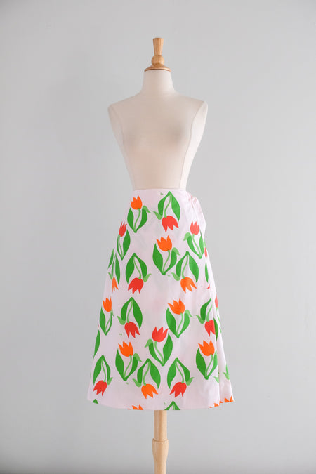 Vintage 1970's Novelty Print Tulip Skirt by The Vested Gentress / Small