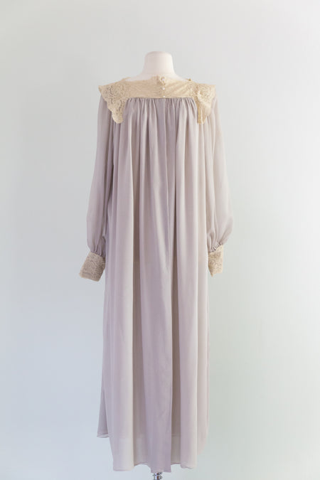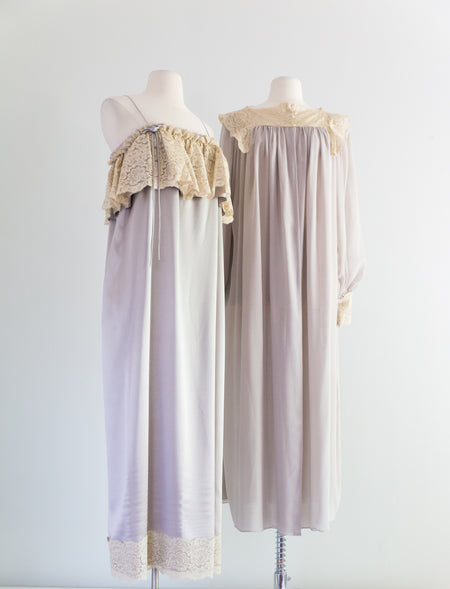 Vintage 1970's Peggy Jennings Dreamy Smokey Lavender Silk Chiffon Peignoir Set