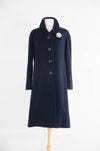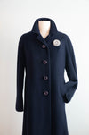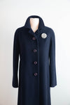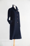 Elegant Early 1960's Navy Blue Cashmere Ladies Overcoat / M